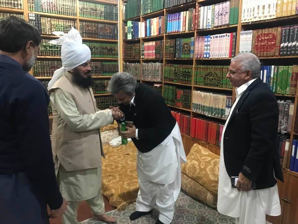 سابقہ وزیر جیل خانہ جات چودھری عبدُالغفور صاحب اور جناب حاجی اسلم صاحب اُستاذُالعُلماء علامہ مُحّمد عبدُالغفورالوری صاحب سے جامعہ کے کُتب خانہ میں مُلاقات